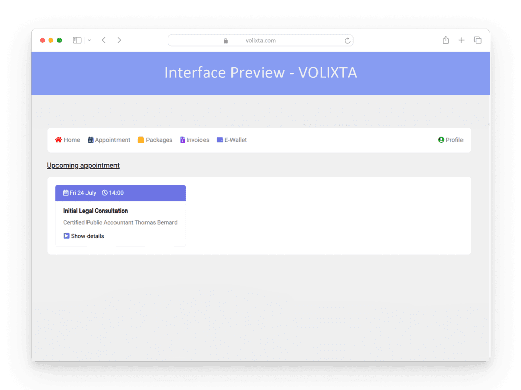 - 🙍 [volixta_customer_profile] Client profile interface: bookings, invoices, packages, credits